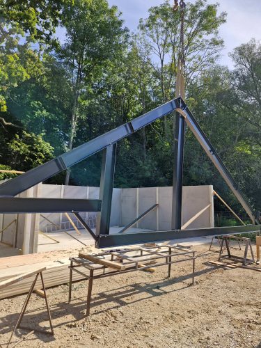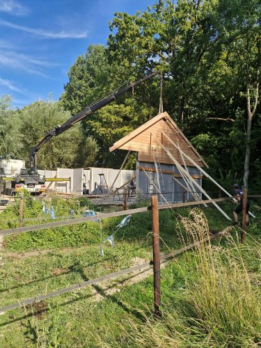 In het prachtige Zuid-Limburgse Voerendaal, bij Kasteel Haeren, hebben we deze stijlvolle kapschuur mogen realiseren. Een deel van de schuur dient als opslagruimte, terwijl het andere deel is ingericht als inloopstal voor de paarden.